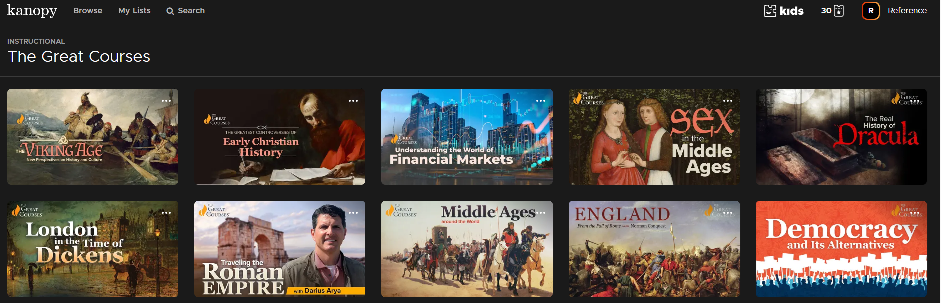 Do you love the Great Courses, but sometimes get frustrated when pieces are missing or damaged? Do you sometimes have to place holds and wait for the subject you want? We've got you covered -- The Great Courses are available for streaming through Kanopy and Hoopla! We will be phasing out our physical copies and offering The Great Courses in digital format only starting in February.